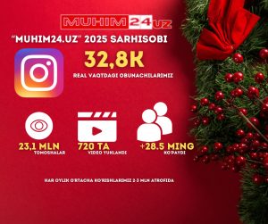 “Muhim24.uz” jamoasi nomidan barchangizni yangi 2026-yil bilan chin yurakdan tabriklaymiz! O‘tgan 2025-yil biz uchun o‘sish, rivojlanish va yangi marralarni zabt etish bilan esda qolgan muvaffaqiyatli yil bo‘ldi. Yilingiz oxirida an’anaga ko‘ra, platformamizning asosiy ko‘rsatkichlari bo‘yicha qisqacha sarhisob taqdim etamiz.