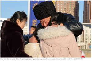 Davlat televideniyesida Shimoliy Koreya diktatorining harbiy forma kiygan, urushda otasini yo’qotgan deb taxmin qilingan yosh qizni quchoqlash uchun sahnaga cho’kkalab o’tirgani ko’rsatildi.